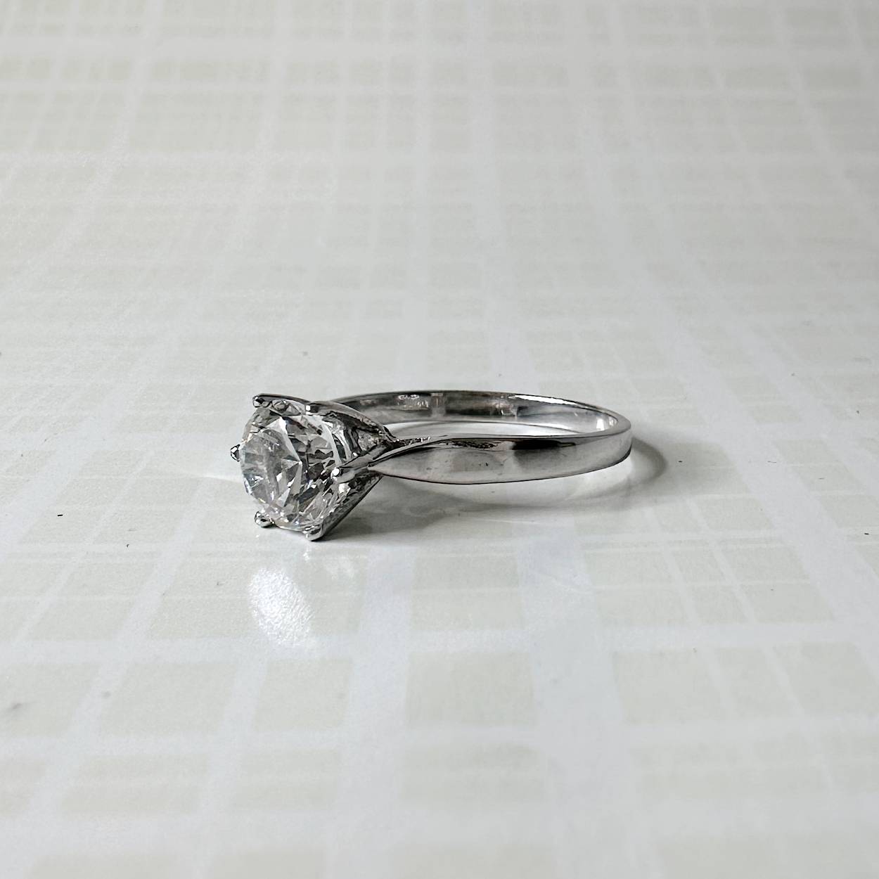 Schitterende vintage ring gemaakt in het witgoud met een grote briljant, geslepen zirkonia. De ring is op maat 52 beschikbaar.
